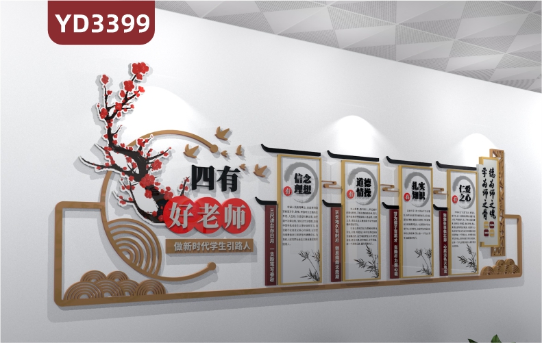 定制中国风红色古典传统文化标语3D立体亚克力扇形楼梯文化墙贴